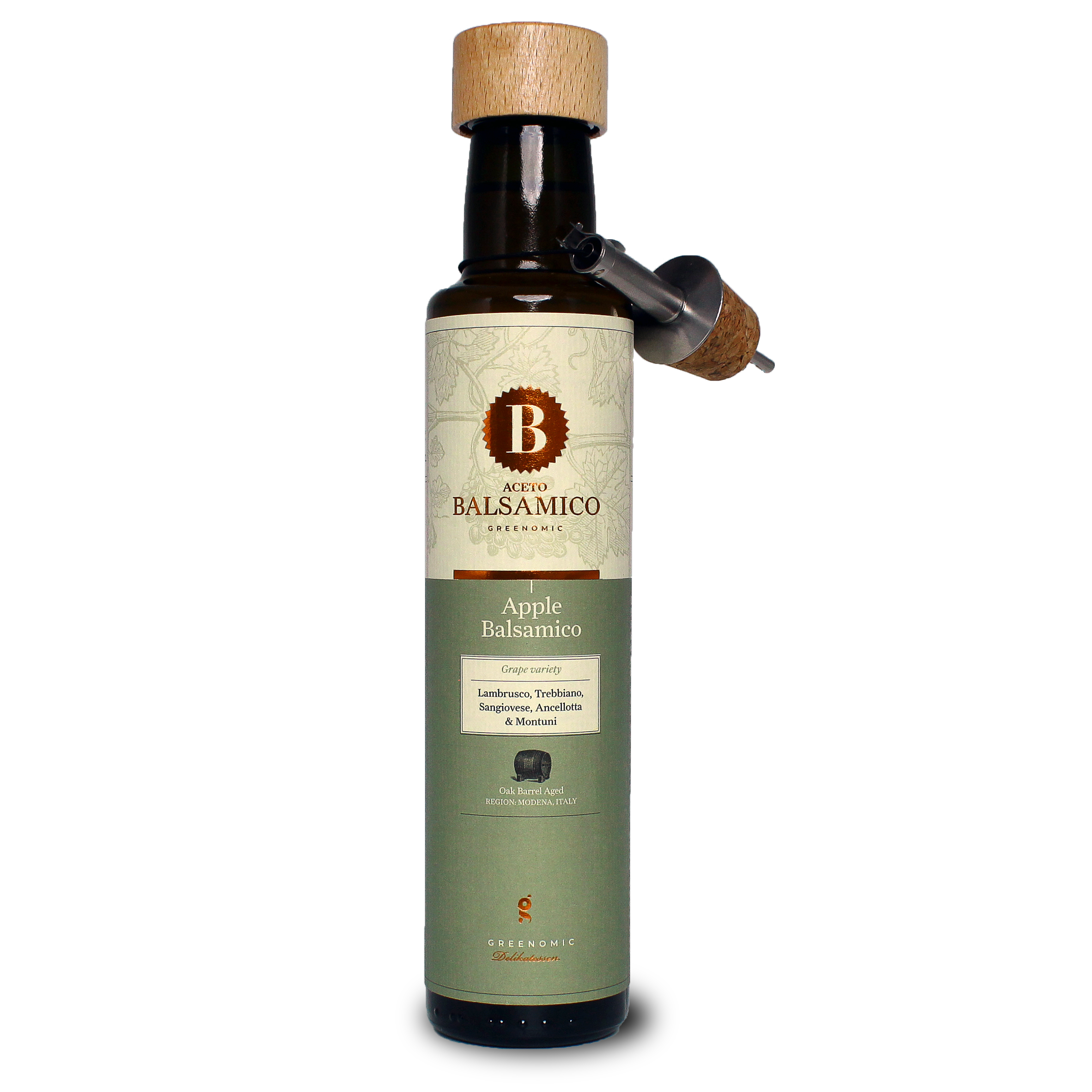 Mit dem Aceto Balsamico Apfel von Greenomic bringen Sie fruchtige Frische in Ihre Gerichte – ideal für Liebhaber von süß-sauren Aromen und außergewöhnlicher Balsamico-Kreationen!
