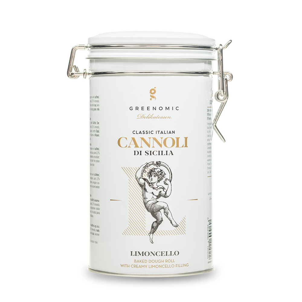 Die Cannoli di Sicilia Limoncello TIN von Greenomic verbinden die traditionelle sizilianische Backkunst mit der spritzigen Frische von Limoncello. Diese knusprigen Teigröllchen, gefüllt mit einer zarten Limoncello-Creme, bieten ein erfrischendes und zugleich köstliches Geschmackserlebnis. Die charmante Bügelverschlussdose macht diese Cannoli zu einem perfekten Geschenk oder zu einem besonderen Genuss für sich selbst.