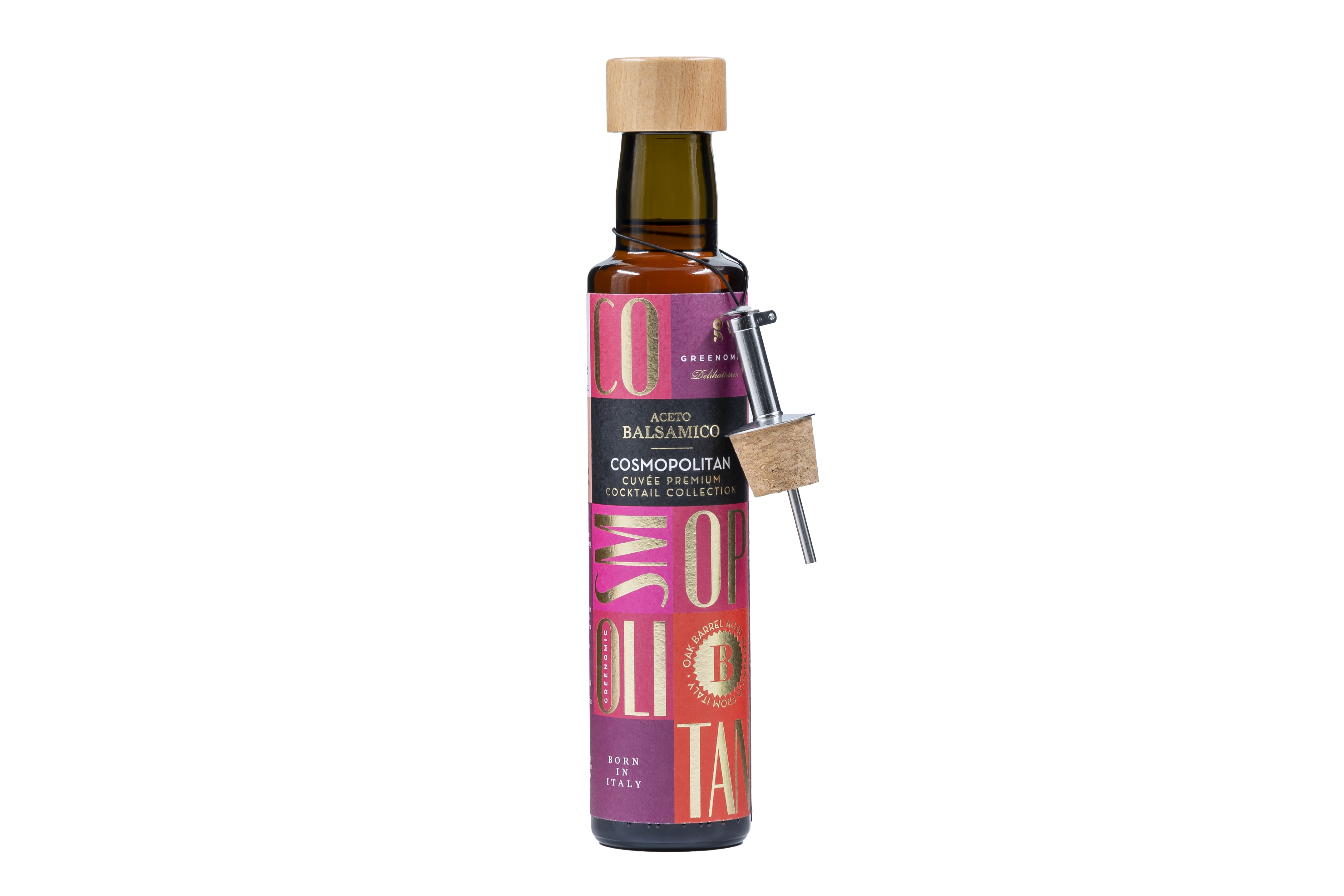 Der Cocktail Balsamico Cosmopolitan von Greenomic verleiht dem klassischen Cosmopolitan eine aufregende, kreative Wendung. Durch die Zugabe von Balsamico-Essig erhält der Cocktail eine feine Säure, die wunderbar mit den fruchtigen Aromen harmoniert. Perfekt, um Ihrem Cosmopolitan eine unverwechselbare Note zu verleihen und das Geschmackserlebnis zu intensivieren. Auch ideal, um Speisen und Desserts zu verfeinern.