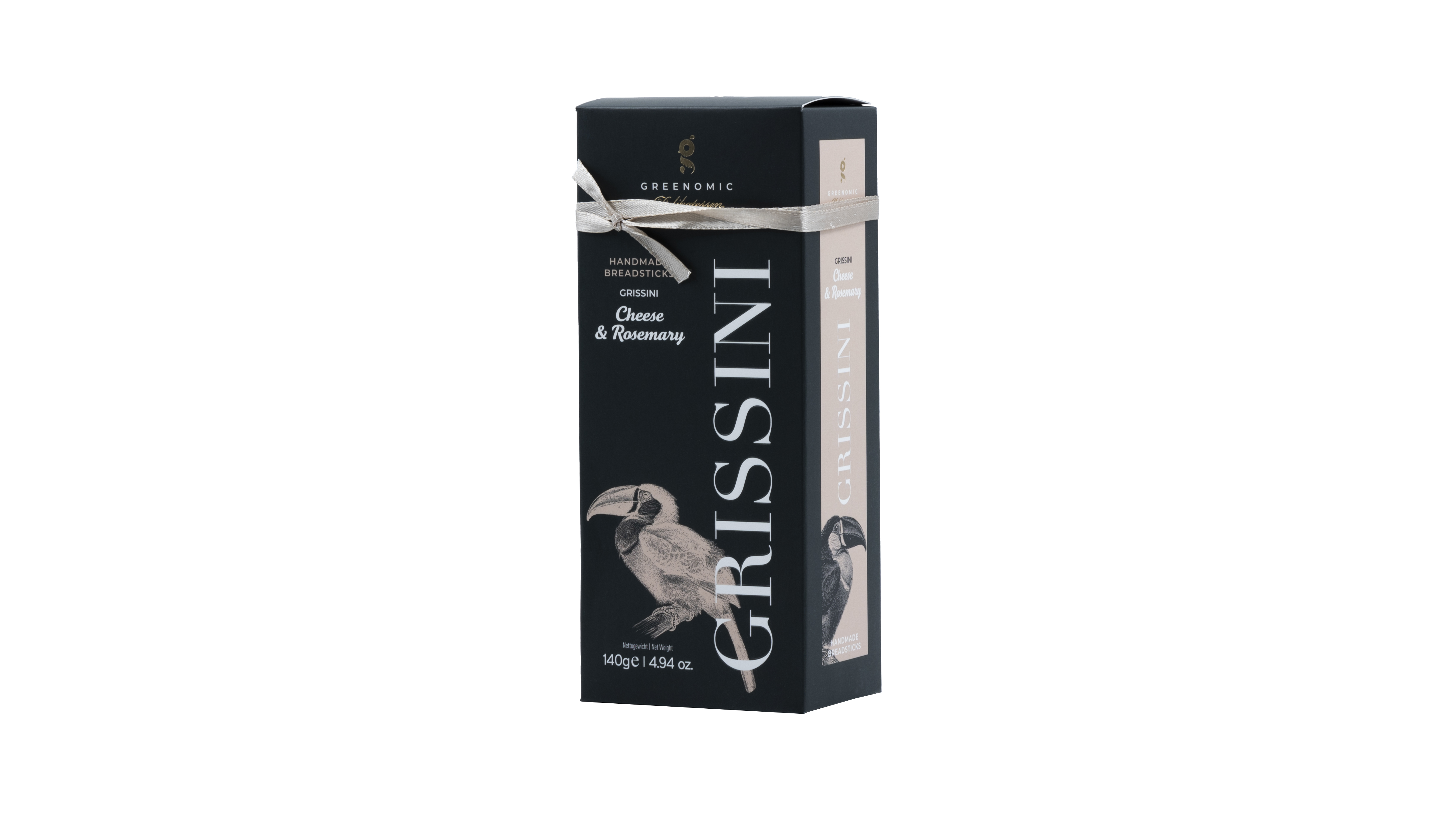 Die Grissini Handmade Cheese & Rosemary von Greenomic vereinen den köstlichen Geschmack von Käse und das aromatische Aroma von Rosmarin in einem knusprigen, handgemachten Brotstick. Diese in Italien hergestellten Grissini sind sorgfältig aus hochwertigen Zutaten gefertigt und bieten eine perfekte Balance zwischen herzhaftem Käse und mediterranem Rosmarin.