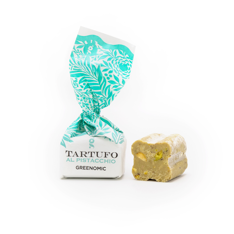Die Tartufo Greenomic Pistacchio vereinen den köstlichen Geschmack von Pistazien und weißer Schokolade zu einer unvergleichlichen italienischen Delikatesse. Diese Tartufi sind mit gehackten und gemahlenen Pistazienstückchen veredelt und bieten eine harmonische Balance zwischen cremiger Süße und dem charakteristischen Pistazienaroma. Jede Praline ist ein luxuriöses Geschmackserlebnis, das den Geist der italienischen Dessertkunst einfängt.