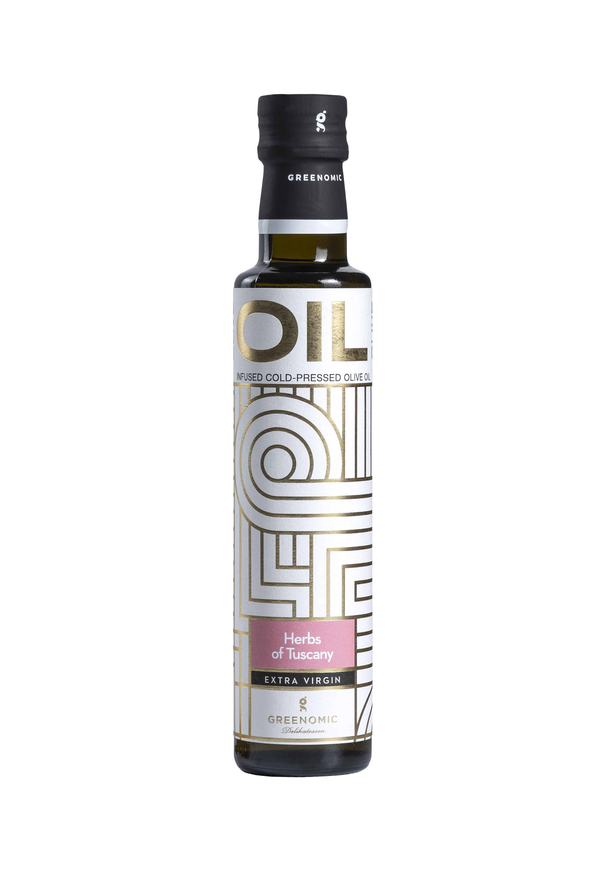 Das verfeinerte Olivenöl "Kräuter der Toskana" von Greenomic verbindet die aromatischen Kräuter der toskanischen Küche mit unserem preisgekrönten, kaltgepressten extra nativen Olivenöl. Dieses hochwertige Öl vereint den frischen, erdigen Geschmack ausgewählter mediterraner Kräuter, der perfekt zu Antipasti, Gemüse, gegrilltem Fleisch und frischem Baguette passt. Es verleiht Gerichten einen Hauch der italienischen Küche und macht jede Mahlzeit zu einem kulinarischen Erlebnis.