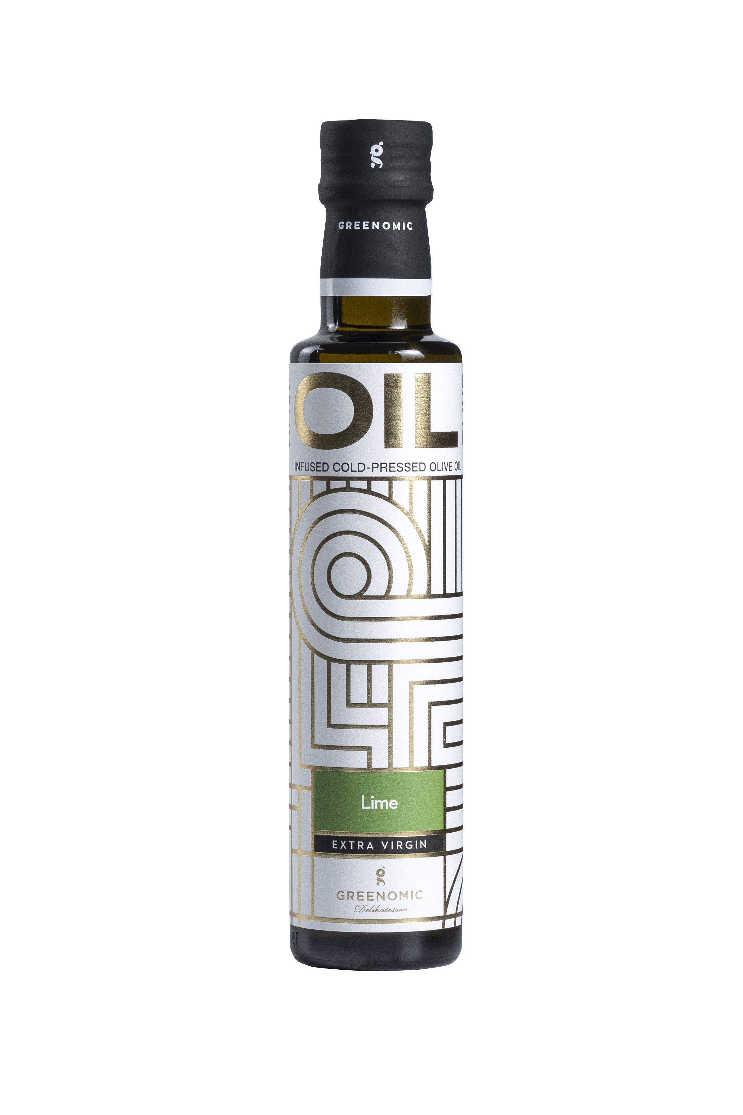 Kaltgepresstes extra natives Olivenöl, natürliches Limettenaroma.