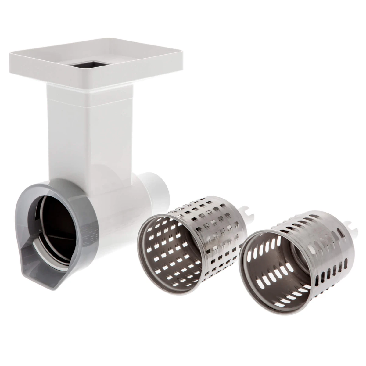 Mittlere Reibetrommel: Ideal zum Reiben von Wurzelgemüse, Rohkost, Nüssen und Hartkäse. Diese Trommel ist vielseitig einsetzbar und liefert gleichmäßige, feine Ergebnisse.