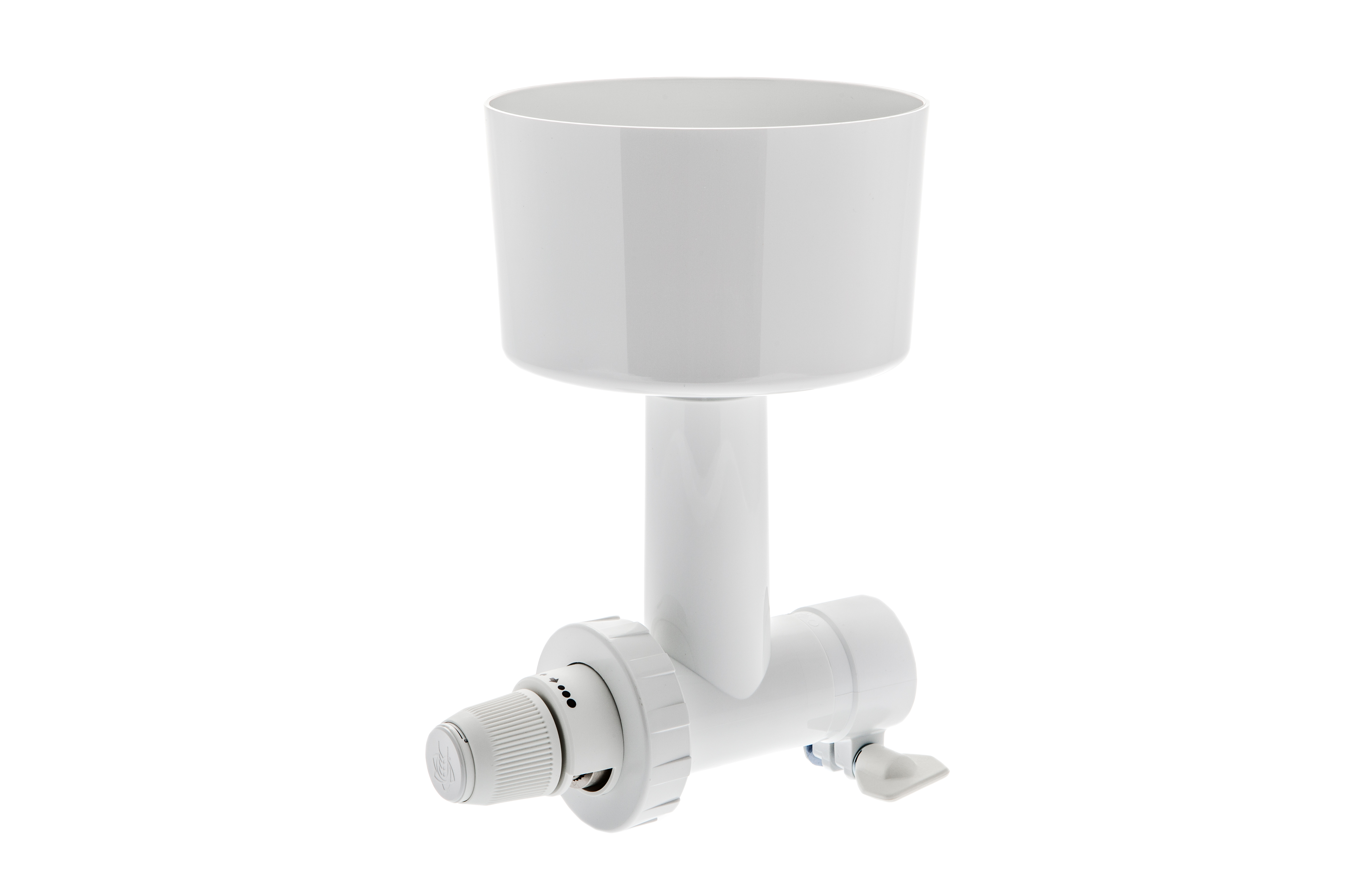 Drehe die Ankarsrum Assistent auf die Seite und bringe die Einfüllschale an – und schon ist die Mühle einsatzbereit.