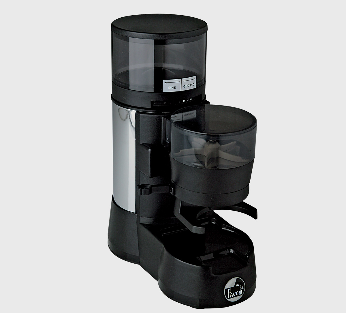 Die kaffeemühle hat einen bohnenbehälter mit einer kapäzitat von 250 gr., und gestattet eine exakte einstellung des gewünschten mahlgrads.