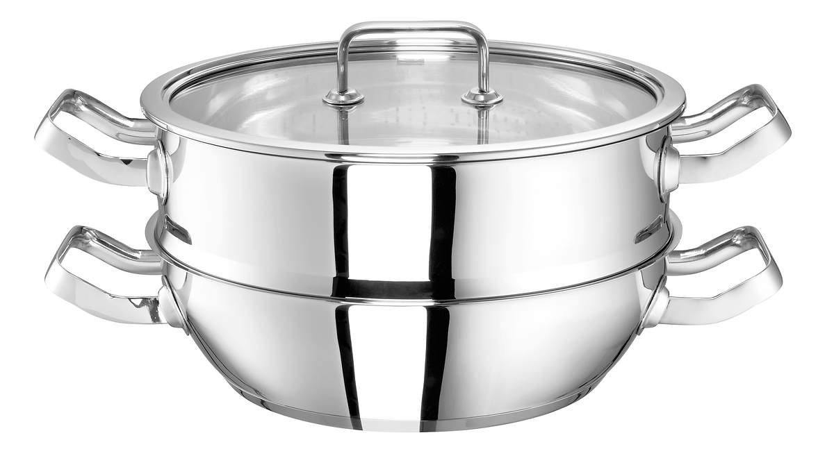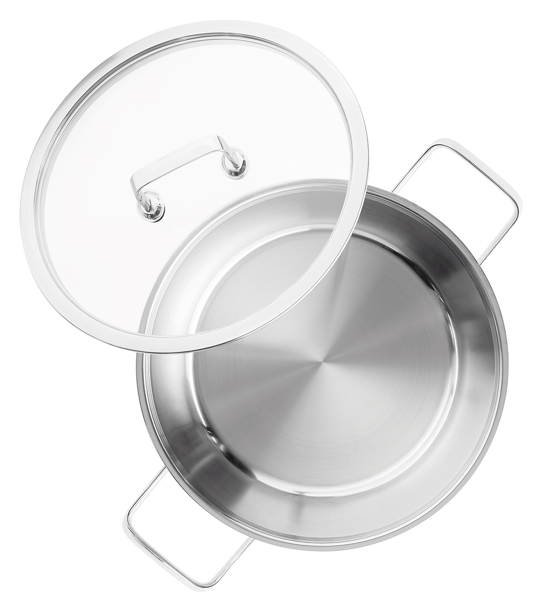 Inklusive: 1 x Schmorpfanne, 1 x Glasdeckel, 1 x Dämpfaufsatz.