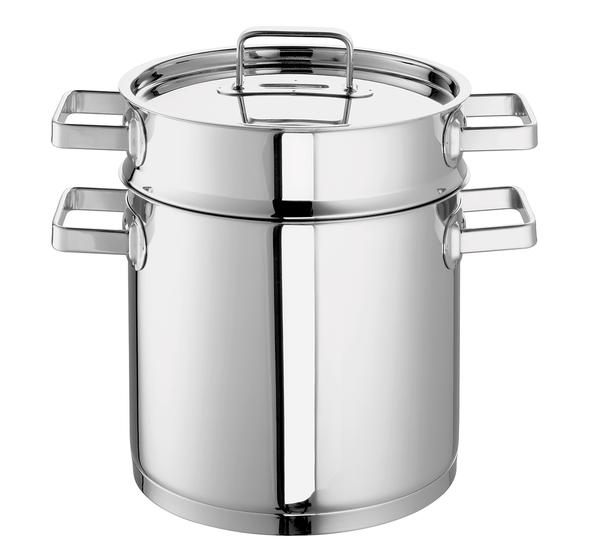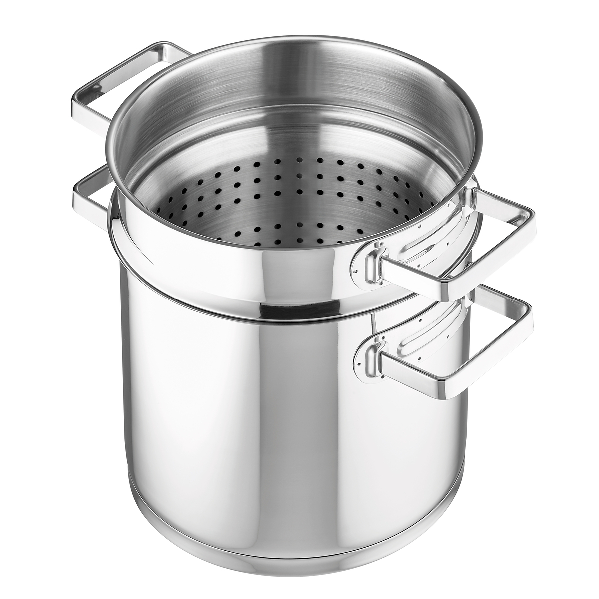 Praktische Features: Mit einer praktischen Innenskalierung lässt sich die Wassermenge genau dosieren, während der stabilisierende Schüttrand ein sicheres Abgießen gewährleistet. Der spezielle Spaghettieinsatz erleichtert das Herausheben der Nudeln ohne zusätzliches Abgießen.