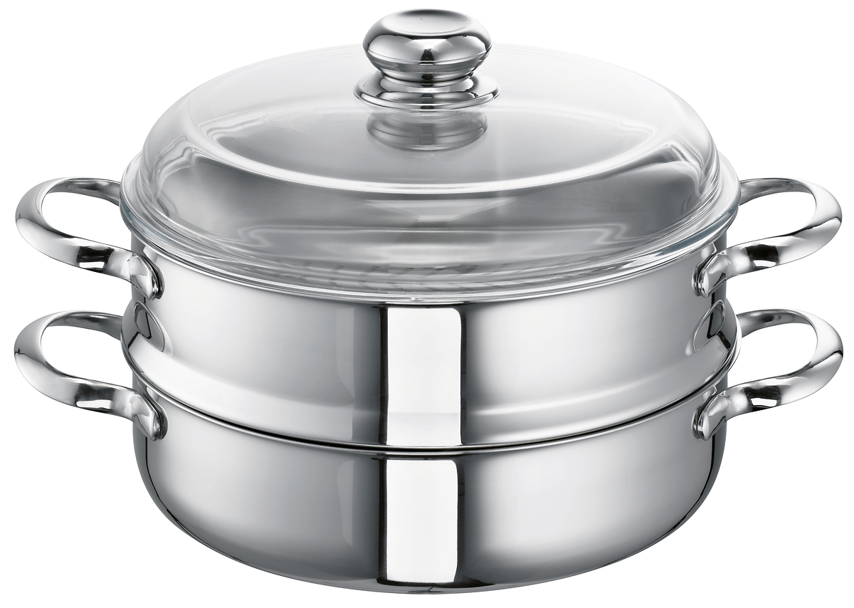 Dämpfen gehört zu den besten Garmethoden, um Vitamine und Mineralstoffe in Lebensmitteln zu bewahren. Mit dem Alles-Dämpfer Romana i garen Sie Gemüse, Kartoffeln, Fisch, Fleisch, Obst und vieles mehr, ohne dass wertvolle Nährstoffe verloren gehen. Das Gargut liegt im Dämpfaufsatz, der auf den zu 2/3 mit Wasser gefüllten Topf gesetzt wird. Durch den aufsteigenden Wasserdampf werden die Speisen gleichmäßig und schonend gegart, ohne Umrühren oder Anbrennen.