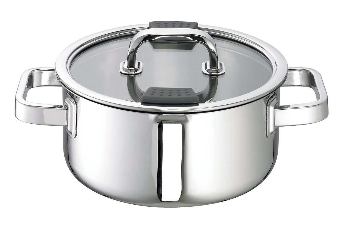 Platzsparend: Dank seines kompakten Designs lässt sich der Topf leicht in jedem Küchenschrank verstauen.