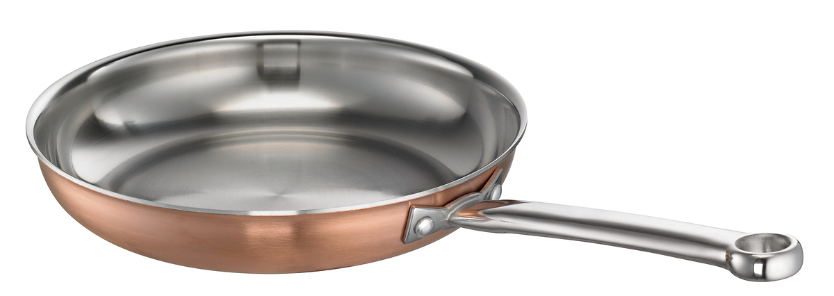 3-Schicht-Material: Kupfer, bekannt für seine herausragende Wärmeleitfähigkeit, kombiniert mit Aluminium und umhüllt von langlebigem Edelstahl, garantiert eine schnelle und gleichmäßige Hitzeübertragung. Diese Materialzusammensetzung sorgt für eine präzise Temperaturkontrolle, was die Pfanne ideal für anspruchsvolle Kochtechniken macht.