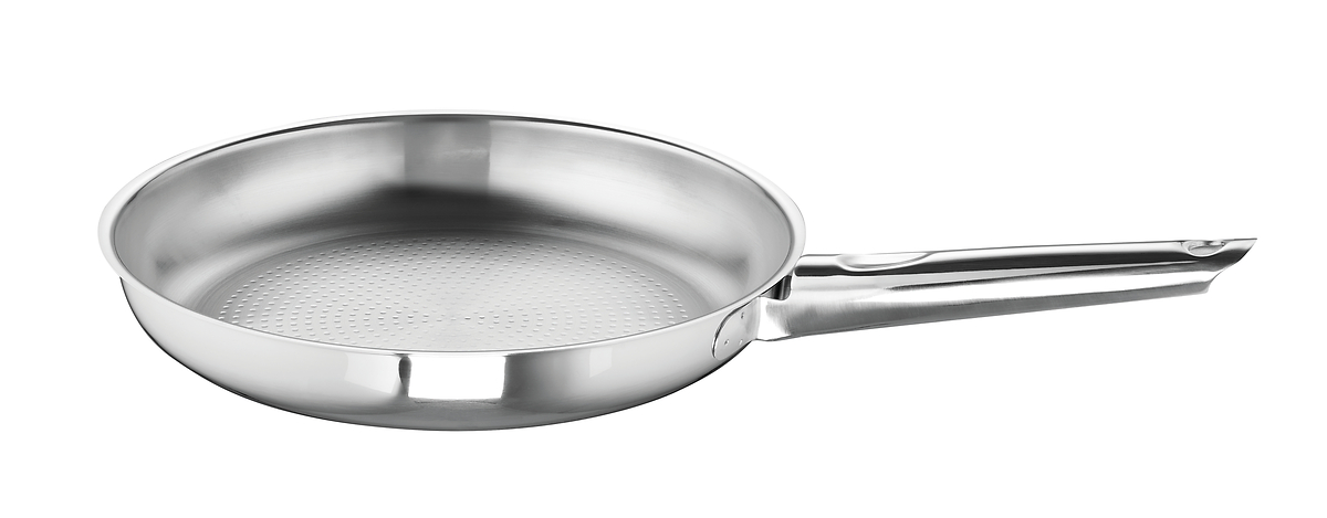 Ein besonderes Merkmal der Bratpfanne Romana i ist die Kugelprägung im Inneren. Diese spezielle Oberflächenstruktur sorgt dafür, dass das Bratgut nicht im Fett liegt, sondern auf dem Fett. Dies ermöglicht eine fettarme Zubereitung, bei der das Bratgut gleichmäßig und knusprig brät, ohne im Fett zu schwimmen. Diese Technik trägt dazu bei, den Fettverbrauch zu reduzieren und gleichzeitig den vollen Geschmack der Speisen zu bewahren.