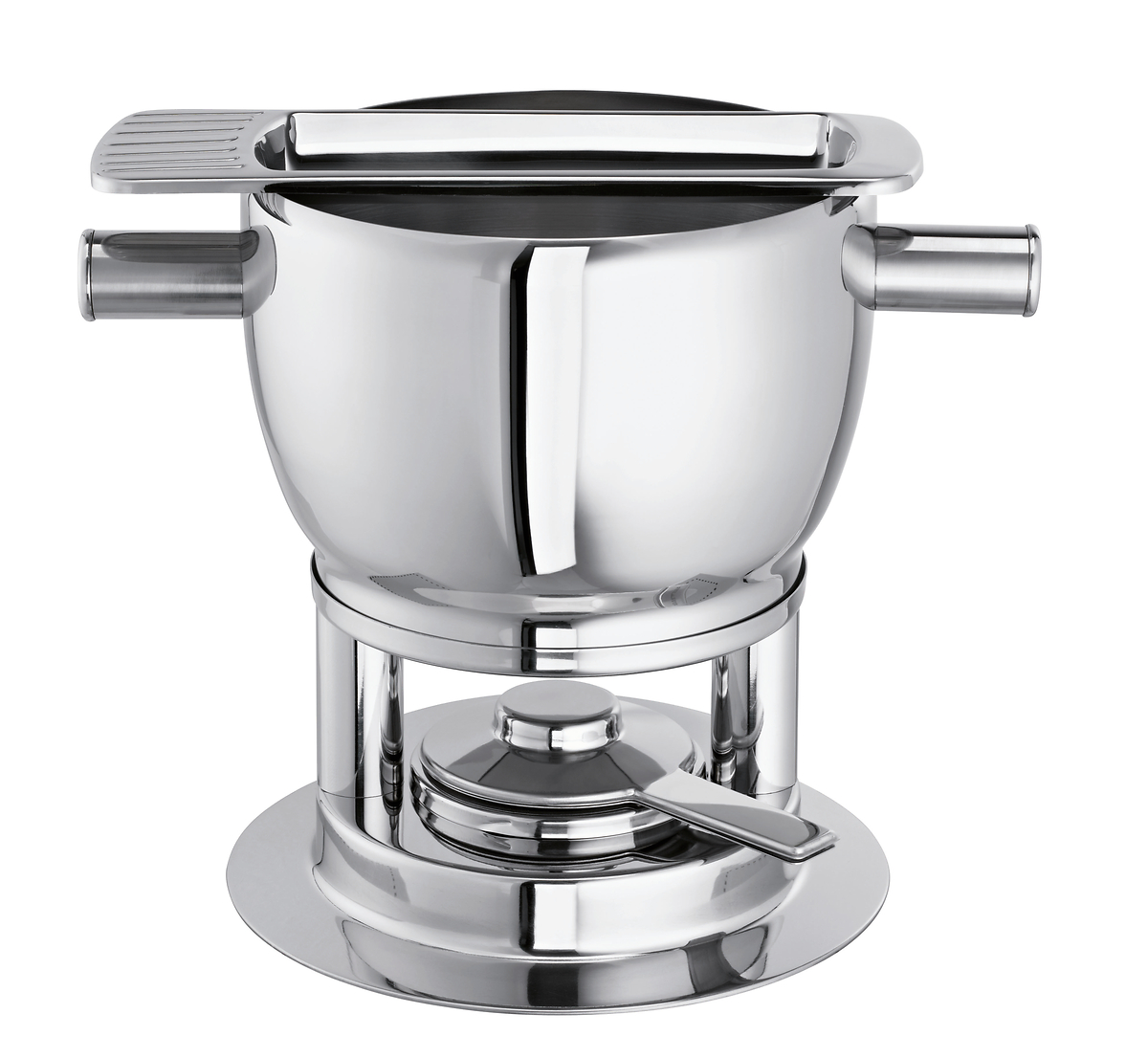 Feuerzange und Rechaud aus rostfreiem Edelstahl: Die Feuerzange ist direkt in das ansprechende Rechaud integriert, das durch seine große Aufstellfläche besonders standsicher ist.