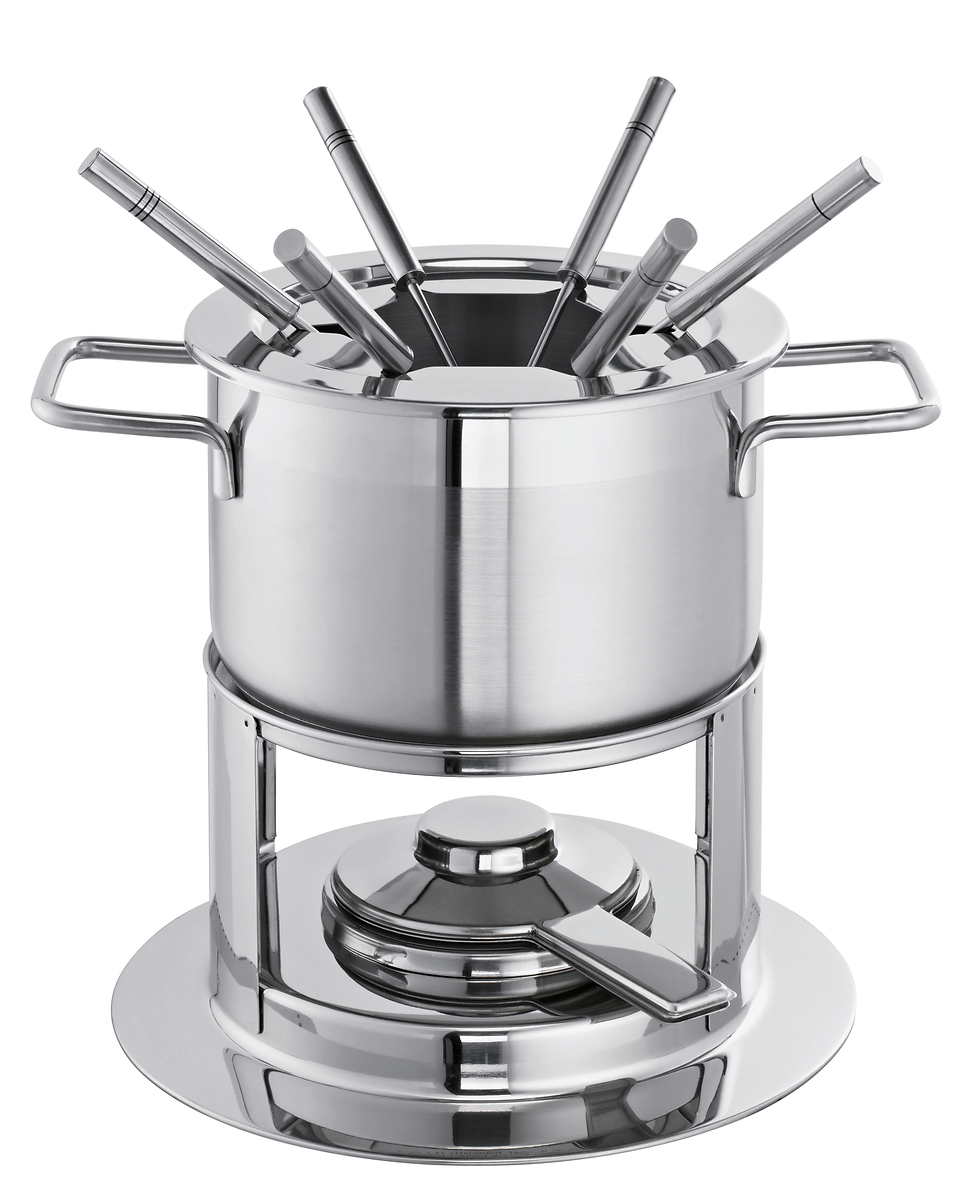 Inhalt: Enthält 1 Fonduetopf, 1 Spritzschutz, 6 individuell gekennzeichnete Einlegegabeln, 1 Rechaud und 1 Sicherheitspastenbrenner.