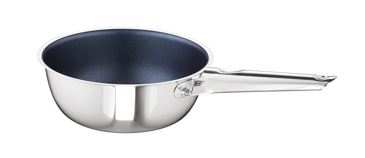 Die Sauteuse Romana i überzeugt durch ihre abgeflachte, konische Form und die sanft gewölbten Seitenwände, die sie besonders ideal für sanftes Kochen und das professionelle Schwenken von Zutaten in heißem Fett machen. Die spezielle Form sorgt dafür, dass das Gargut gleichmäßig gegart wird, ohne dass es durch ständiges Umrühren zerdrückt wird. Dies ist besonders vorteilhaft beim Zubereiten von kleinen Fleischstücken, Fisch, Gemüse oder Pilzen, da die Sauteuse es ermöglicht, die Zutaten sicher und gleichmäßig zu garen.