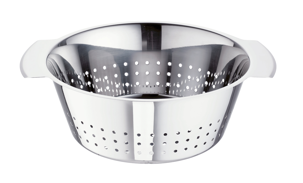 Hochglanzpoliert: Der Seiher zeichnet sich durch seine hochglanzpolierte Oberfläche aus, die nicht nur ästhetisch ansprechend ist, sondern auch die Reinigung erleichtert.