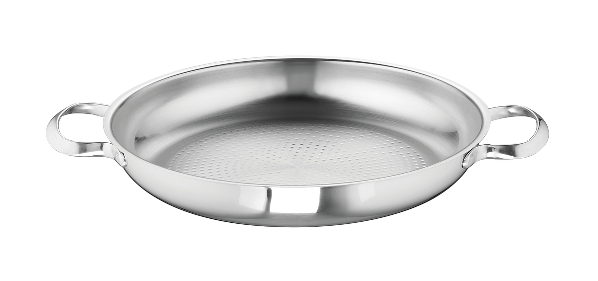 Die Servierpfanne Romana i wird aus hochwertigem rostfreiem Edelstahl in besonders schwerer Ausführung gefertigt, der hochglanzpoliert ist. Dieser Edelstahl bietet nicht nur eine ansprechende Optik, sondern auch eine hohe Widerstandsfähigkeit gegenüber Kratzern und Abnutzung. Die Wärmeisolierenden Edelstahlgriffe sorgen für zusätzlichen Komfort und Sicherheit beim Hantieren mit der Pfanne.