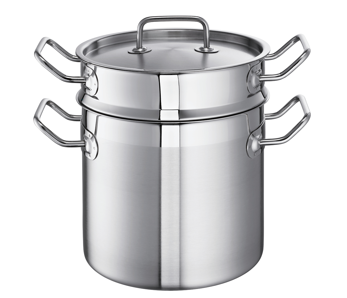 Der Spaghettitopf ist mit einem speziell entwickelten Edelstahleinsatz ausgestattet, der das Überkochen verhindert. Eine spezielle Anordnung der Löcher im Einsatz lässt den Schaum zusammenfallen, bevor er über den Rand sprudeln kann. Dies verhindert nicht nur eine unordentliche Küche, sondern sorgt auch dafür, dass kein Wasser auf die heiße Herdplatte gelangt.