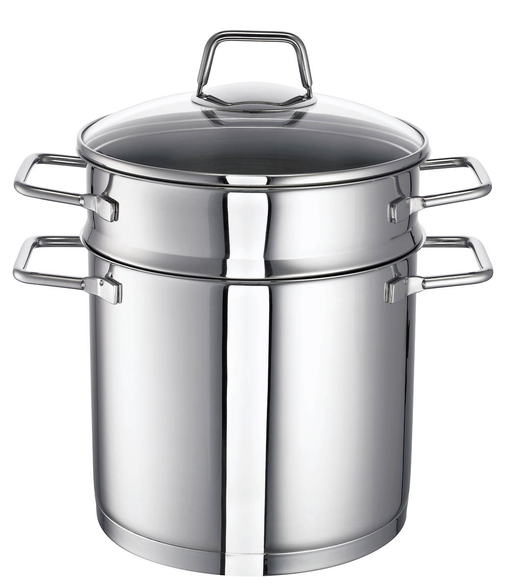 Einfaches Handling: Dank des Edelstahleinsatzes können Nudeln direkt und mühelos aus dem kochenden Wasser herausgehoben werden, ohne dass ein separates Sieb benötigt wird.