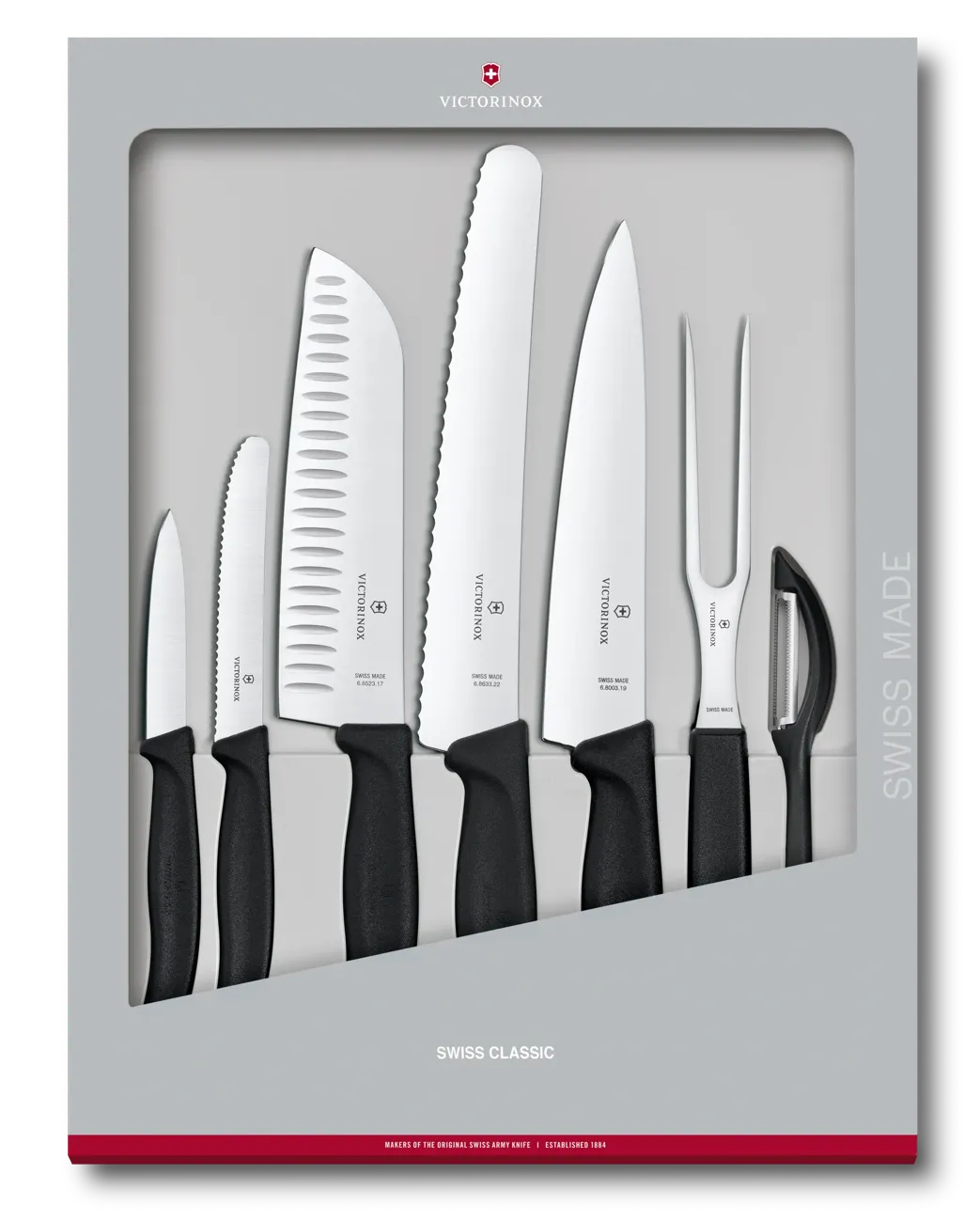 Mit unserem 7-teiligen Swiss Classic Küchengarnitur-Set sind Sie bestens ausgestattet, um wie die Profis zu kochen. Ob Hobbykoch oder angehender Profi, dieses Set bietet die perfekte Grundlage für kulinarische Kreationen und sorgt für Präzision und Effizienz in der Küche. Mit robusten, langlebigen Klingen und ergonomischen Griffen, die leicht in der Hand liegen, wird jede Schneidearbeit zum Kinderspiel.