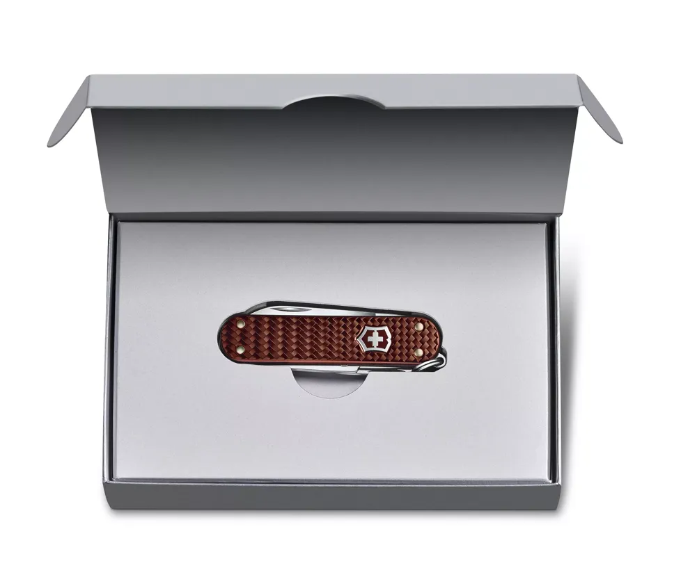 Die Classic SD Alox Taschenmesser präsentieren sich in einem brandneuen Precious Alox Design, das durch seine auffällige gewebte Struktur beeindruckt. Dieses Design verleiht den Schalen nicht nur eine einzigartige Haptik, sondern macht das Messer auch extrem widerstandsfähig. Erhältlich in fünf modernen Farben, bringt das Alox-Muster Eleganz und Langlebigkeit in Einklang. Die fünf praktischen Funktionen machen dieses Messer zu einem unverzichtbaren Werkzeug für den täglichen Gebrauch – sei es im Büro, unterwegs oder zu Hause.