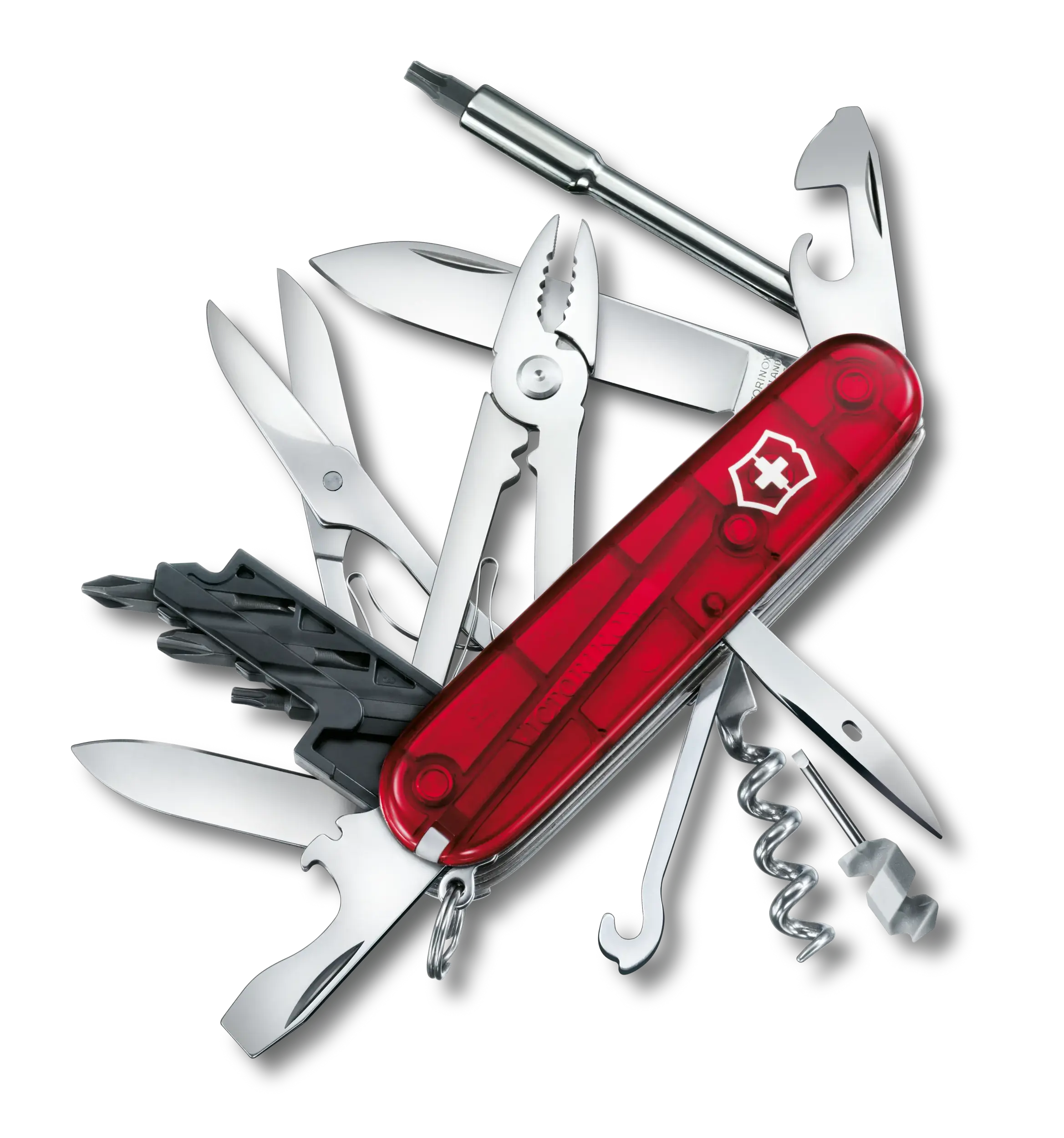 Das Cyber Tool Taschenmesser ist speziell für die Anforderungen des digitalen Zeitalters und der Elektronikindustrie konzipiert. Es kombiniert die legendäre Vielseitigkeit eines Schweizer Offiziersmessers mit modernen Werkzeugen wie einem Bit-Schlüssel und einem ausklappbaren Bit-Halter, sodass es ideal für das Festziehen oder Lösen von Schrauben in Elektrogeräten geeignet ist.